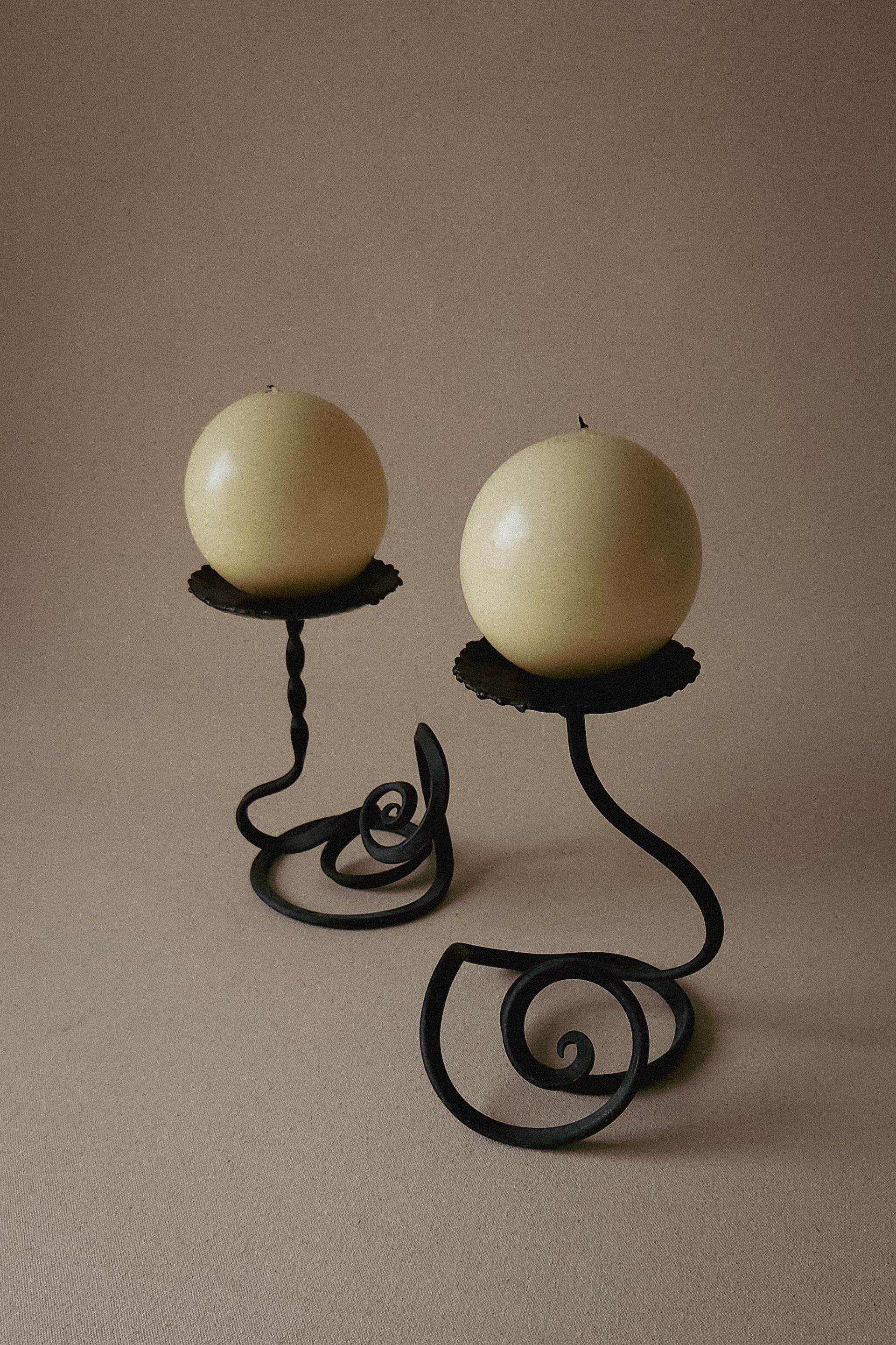 A pair of wrought iron candle holders