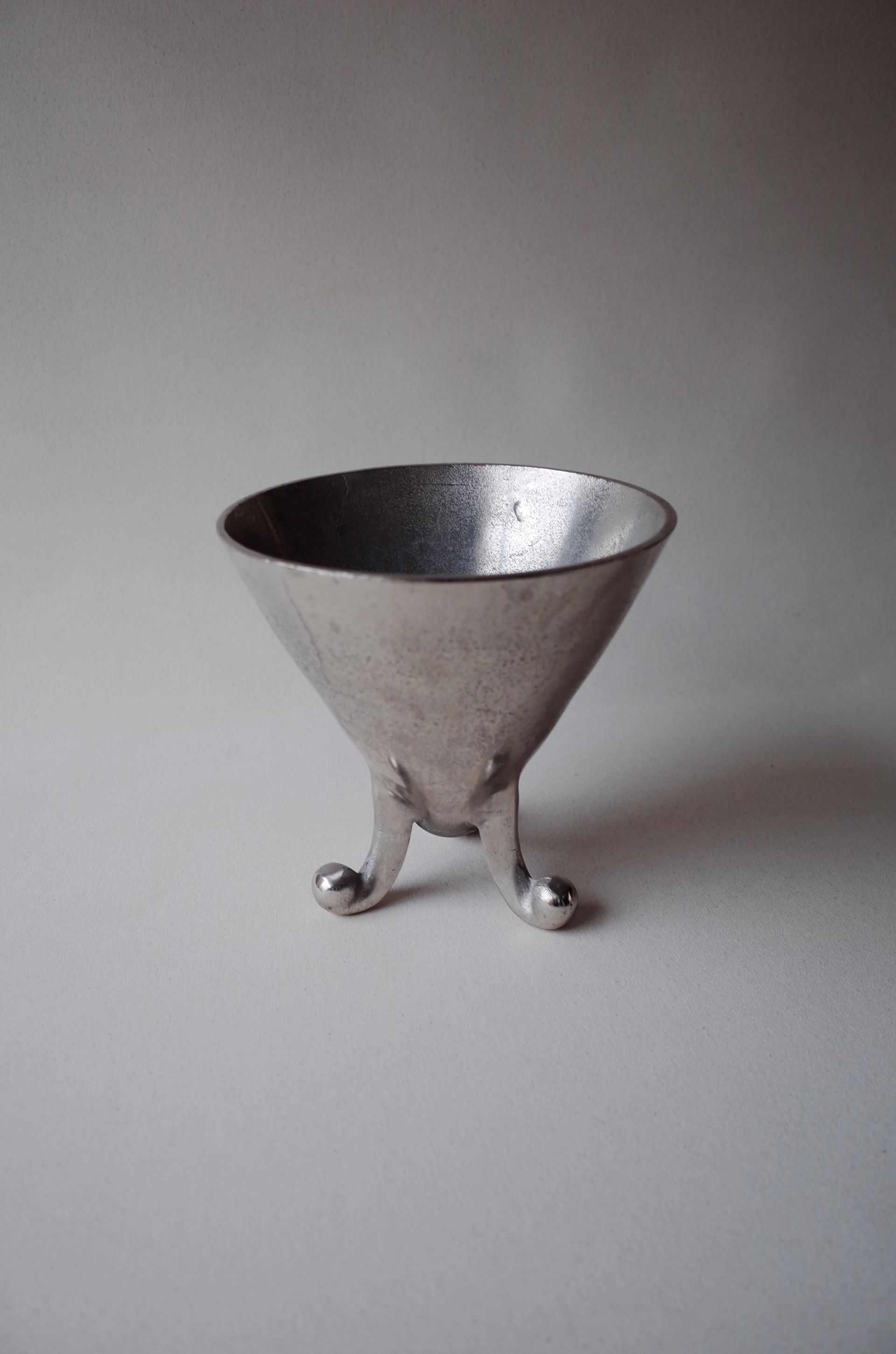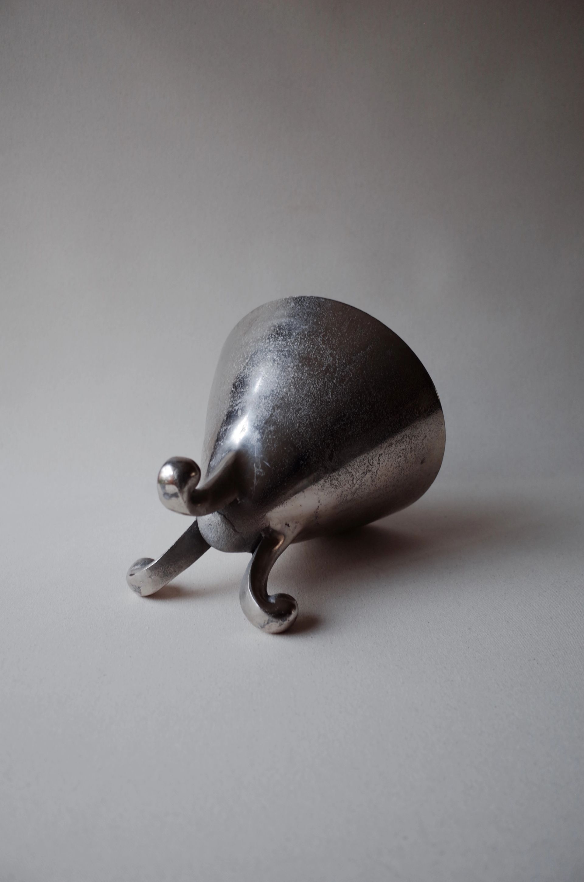 This is a three-legged silver-plated ice bucket made from solid cast metal, reflecting the Swedish Grace movement of the early 20th century. It combines elegance and functionality, with a refined, minimal design and subtle details that hint at classical forms.