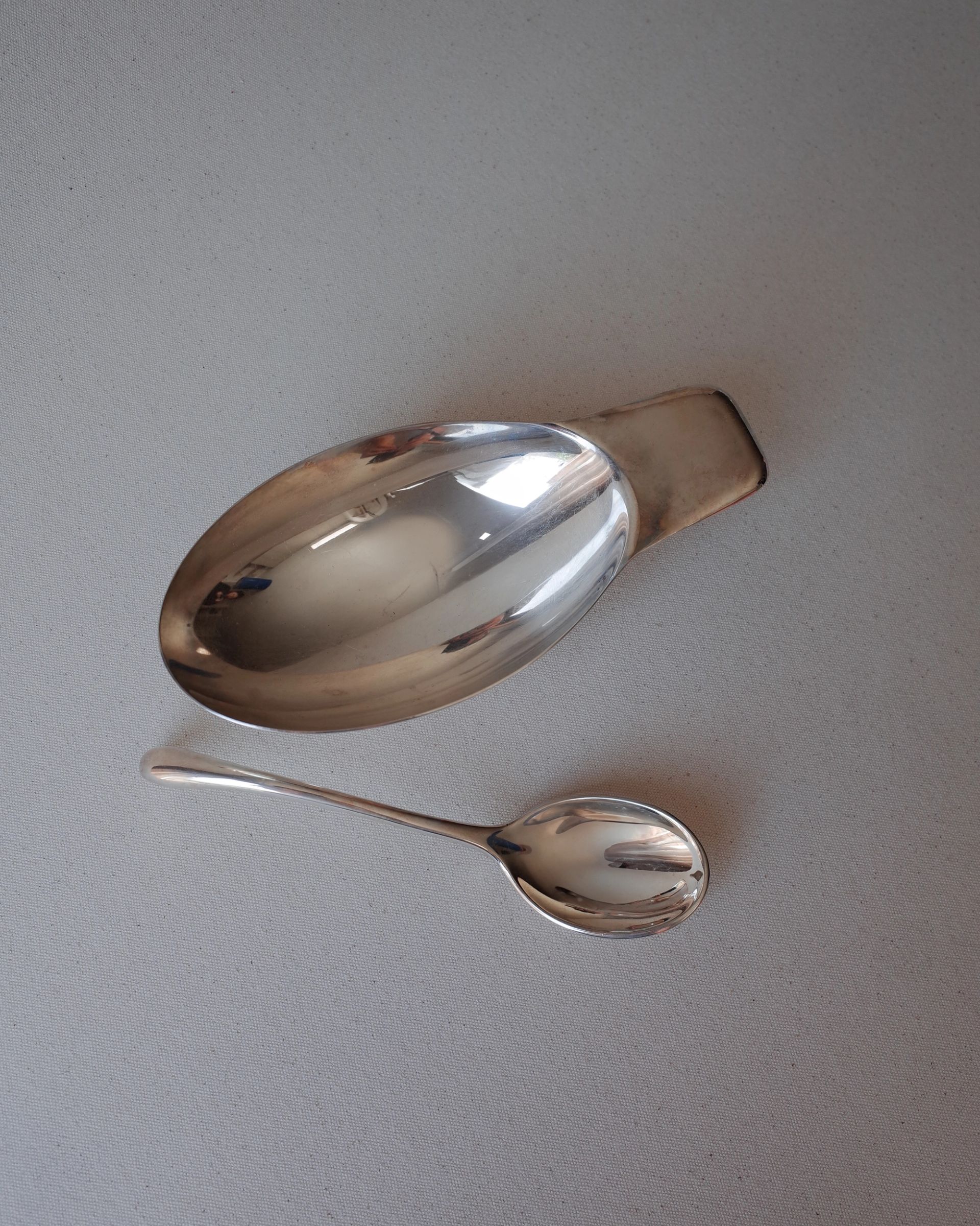 Sauce boat by Christian Fjerdingstad for Christofle Gallia Cygne. In good condition — this vintage/antique piece may show some wear, such as light scratches and other signs of aging.